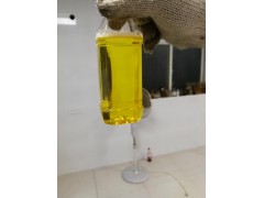 布油去味脱色技术:布油先打入脱水罐中加热到90度左右脱水;然后脱胶,沉降;待油温降到60度时在脱色罐中加入脱色剂(代替过滤砂白土),搅拌30分钟后经叶片过滤机过滤脱色即成成品油(处理一吨化工原料需要300元左右,油品清澈透亮,颜色接近水白色),脱色过的成品油(不改变油本身的指标)没有异味且不会氧化,出油率高达96%以上。生产过程中车间没有异味、没有噪音、没有废水、没有污染,安全环保。