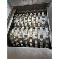 这一台二手撕碎机的型号是800型,配备了两台6级22千瓦电机,配备了两台650型减速机,刀片尺寸为直径400mm厚度50mm,刀片齿数为12齿,刀片数量为16片,刀片是刚刚更换的全新刀片。配备了一台自动反转电控柜。全新机价格为7.2万元,目前二手撕碎机设备价格4万元。